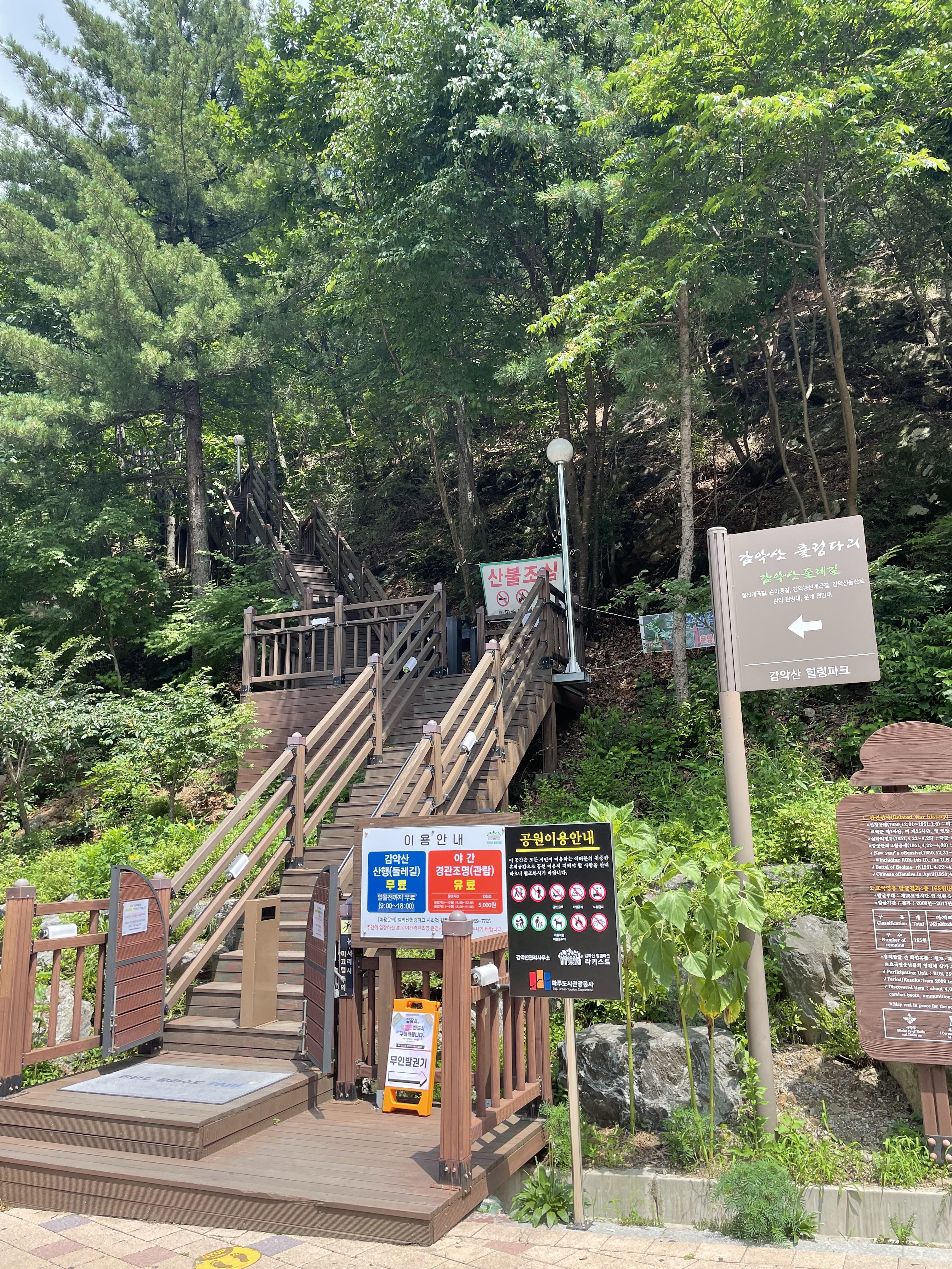 감악산 출렁다리 올라가는 길. 여러 길이 있지만 여기는 카페 미테 옆에 있는 오르는 길이다.