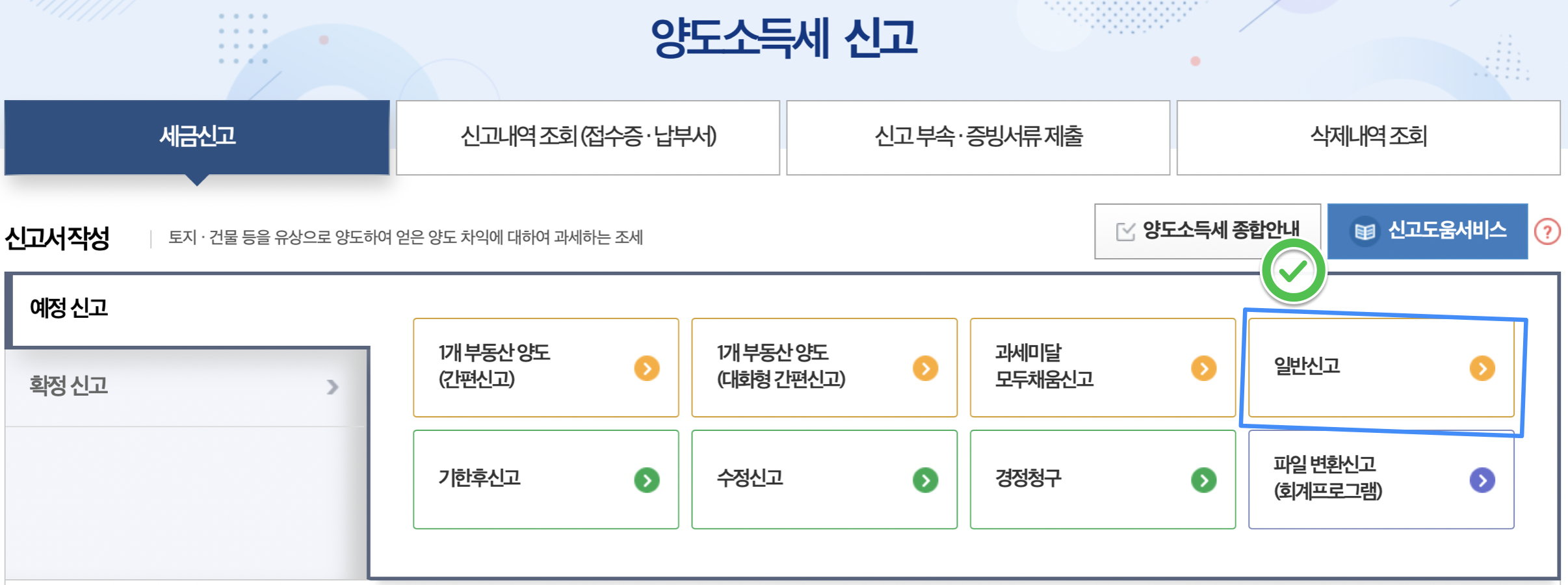저는 필지 여러 개를 한 번에 매도하였기 때문에 일반신고로 들어가줍니다.