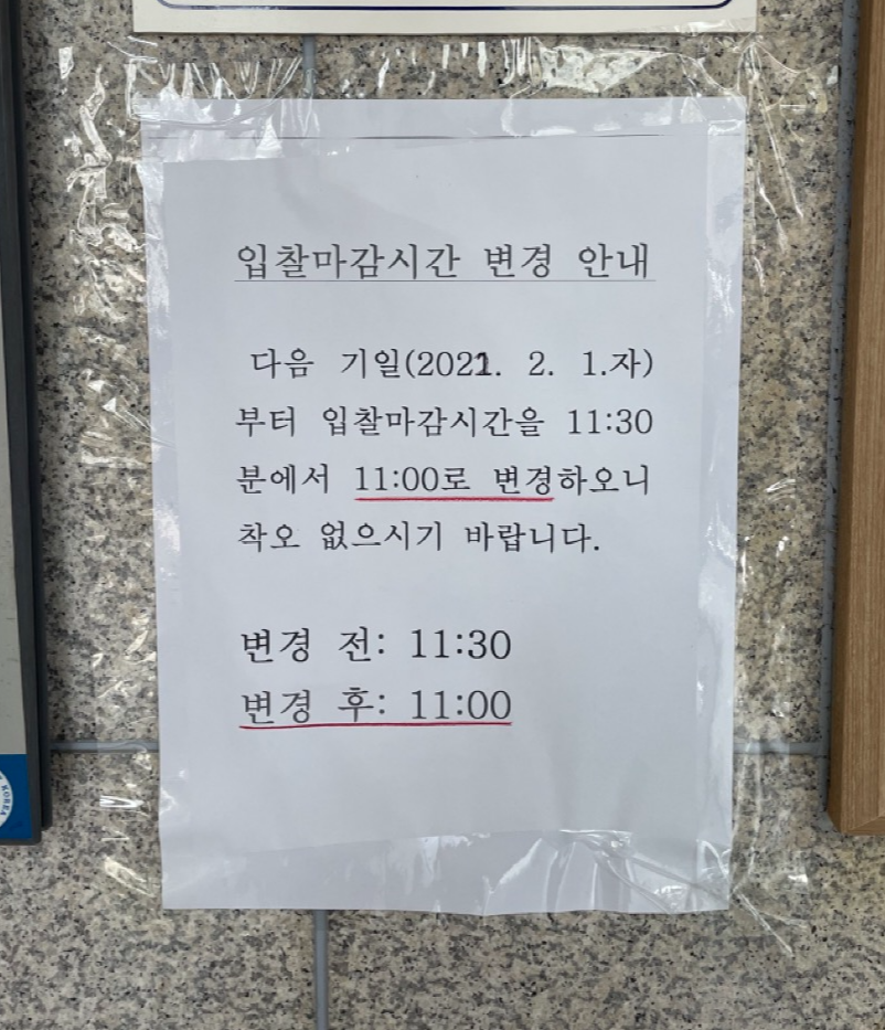 2022년 2월 1일 자로 11시 30분에서 11시로 바뀌었네요. 시간변동 폭이 상당히 큽니다.