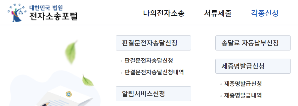 법원 전자소송 홈페이지에서 송달증명을 신청해보겠습니다.