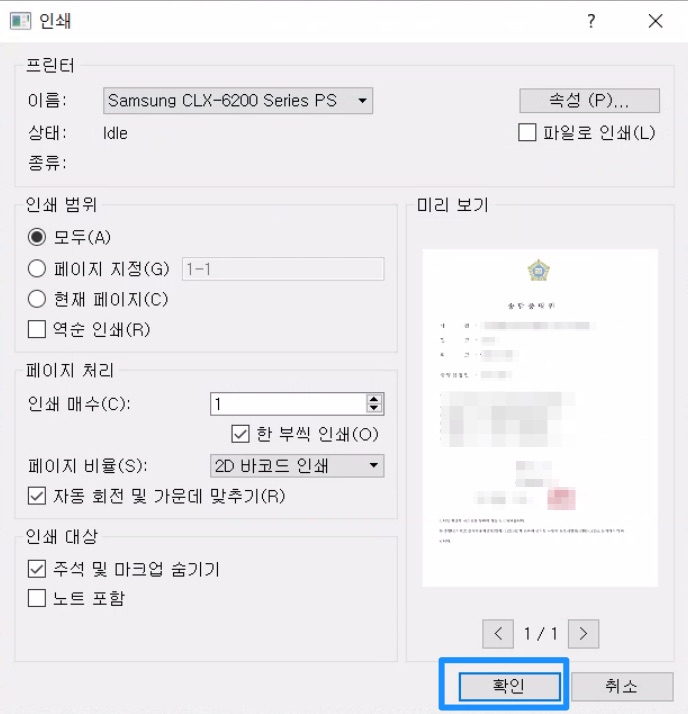 곧이어 등장하는 인쇄 창에서 PDF로 저장하거나 인쇄합니다.