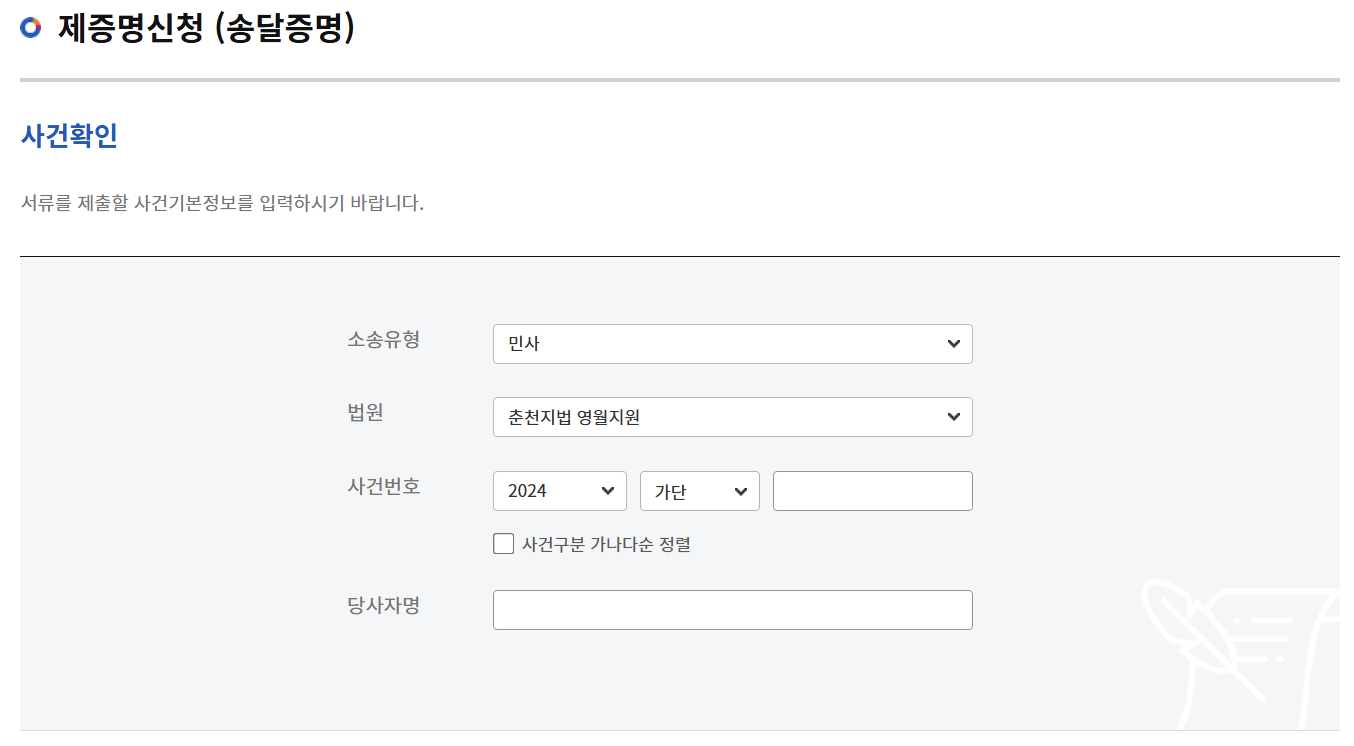 소송유형, 법원, 사건번호, 당사자명 차례대로 입력