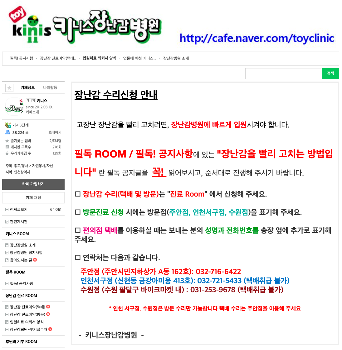 장난감 수리가 필요하신 분들은 키니스장난감병원을 이용해보세요.