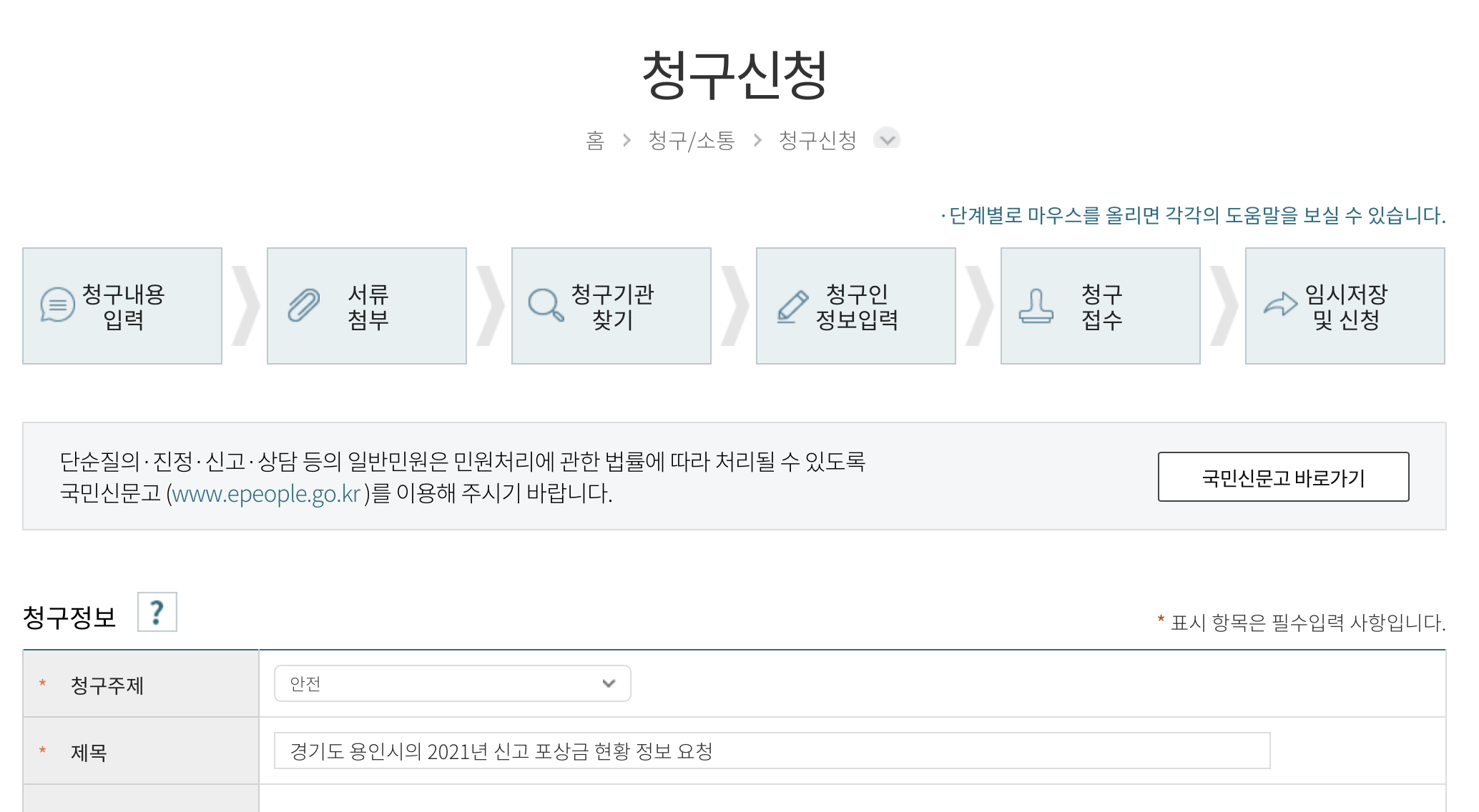 정보공개를 원하는 자료에 대한 설명을 적어서 청구를 신청하시면 됩니다.