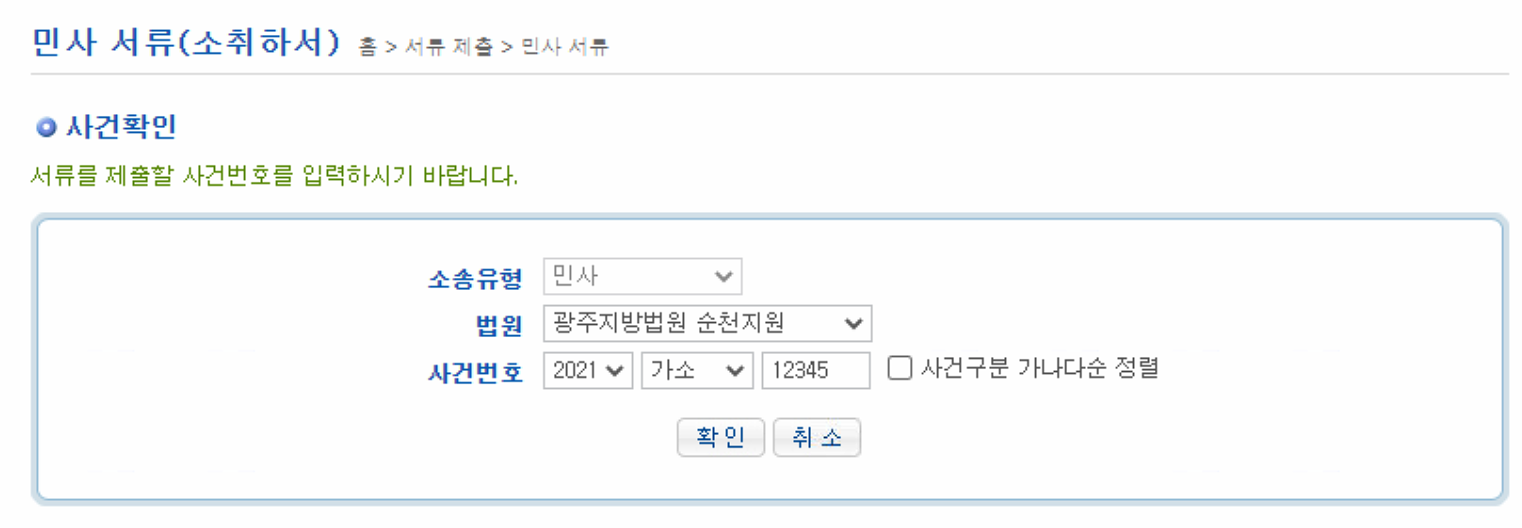 관할법원과 사건번호 입력 후 확인
