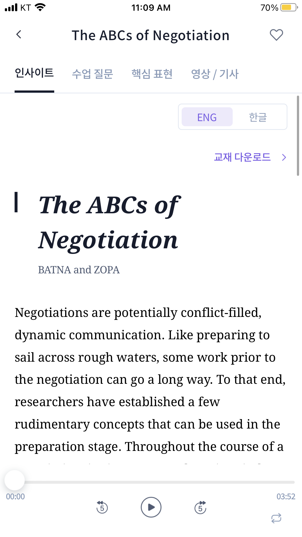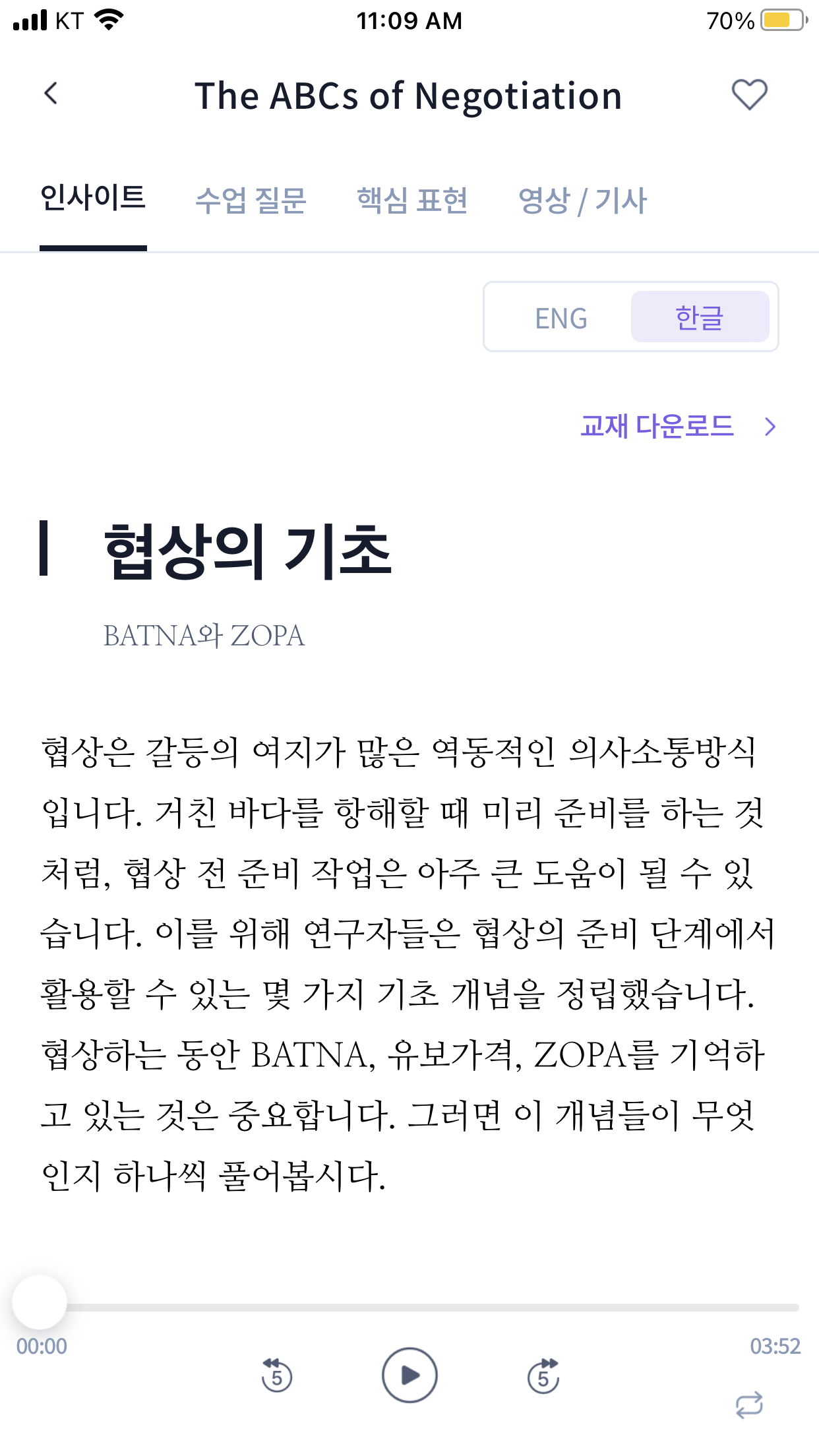 저는 협상의 기초에 관한 수업을 선택했습니다.