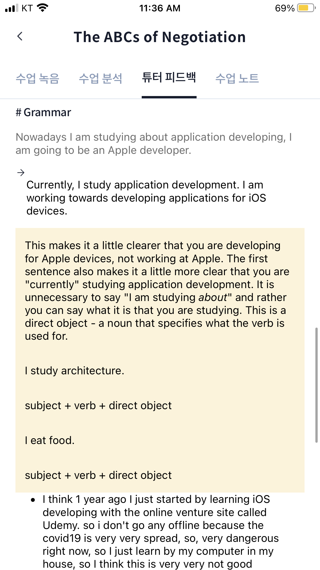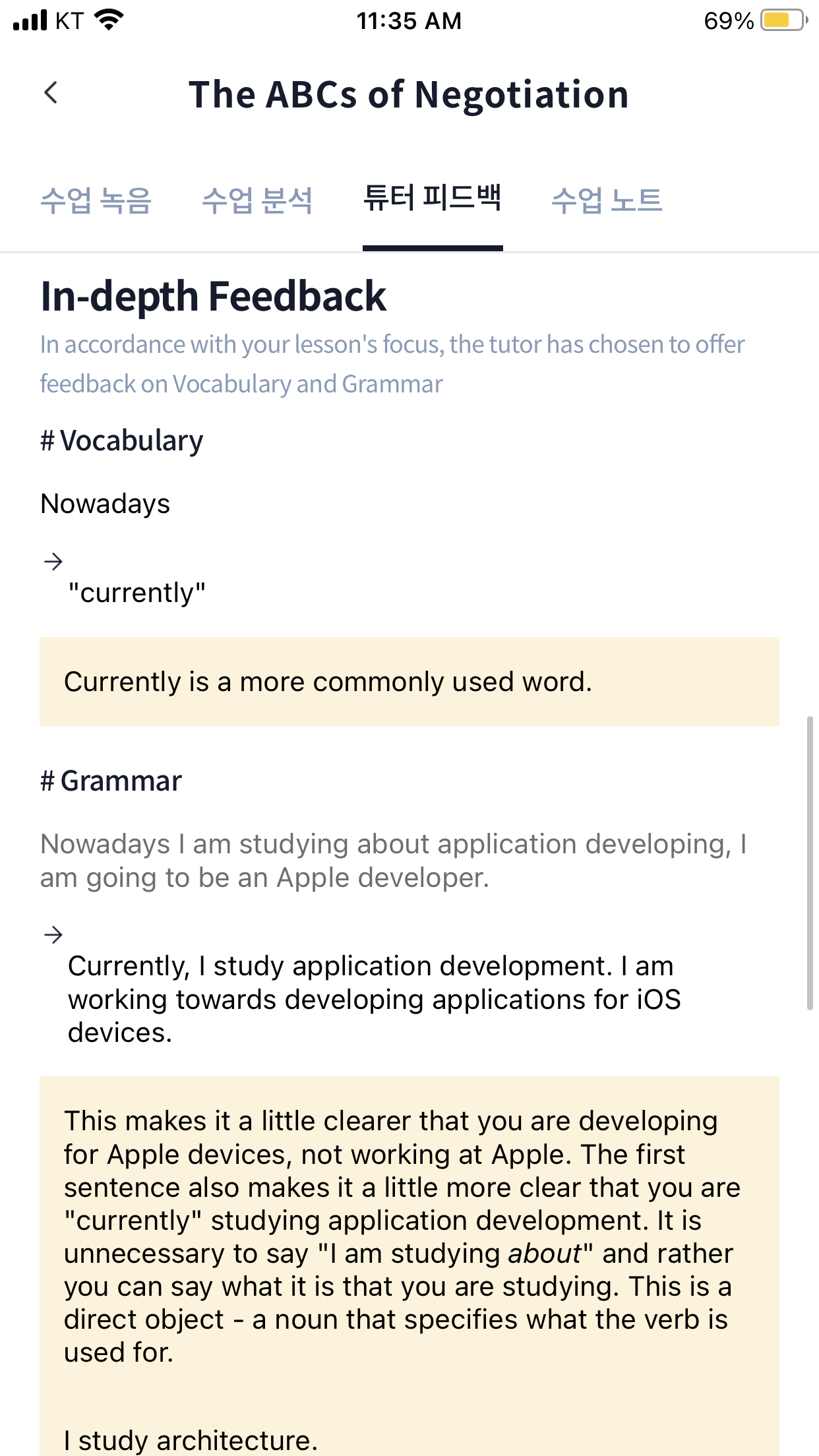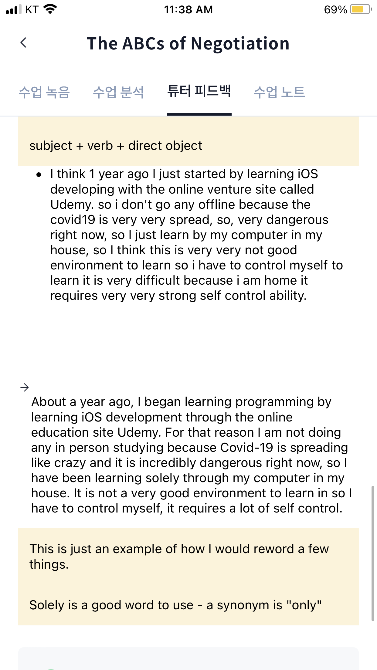 제가 말하는 것들이 모든 것들이 텍스트로 나와 있고 튜터의 코멘트가 나와있어서 복습하기에 아주 좋습니다.