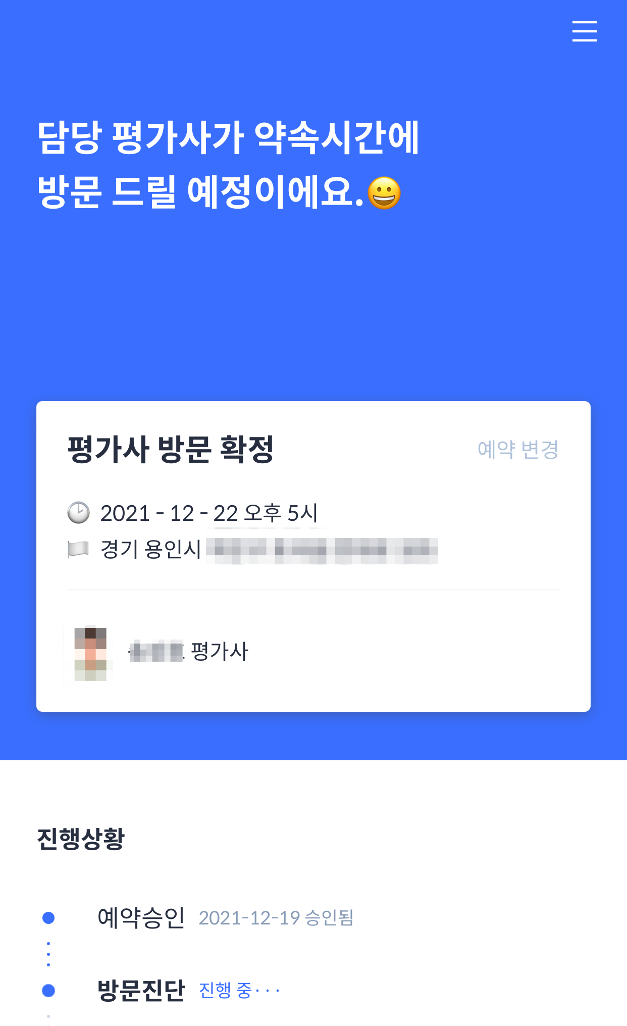 저는 평가사님에게서 당일 아침 연락을 받았고 약간의 시간 조정을 하게 됐습니다.