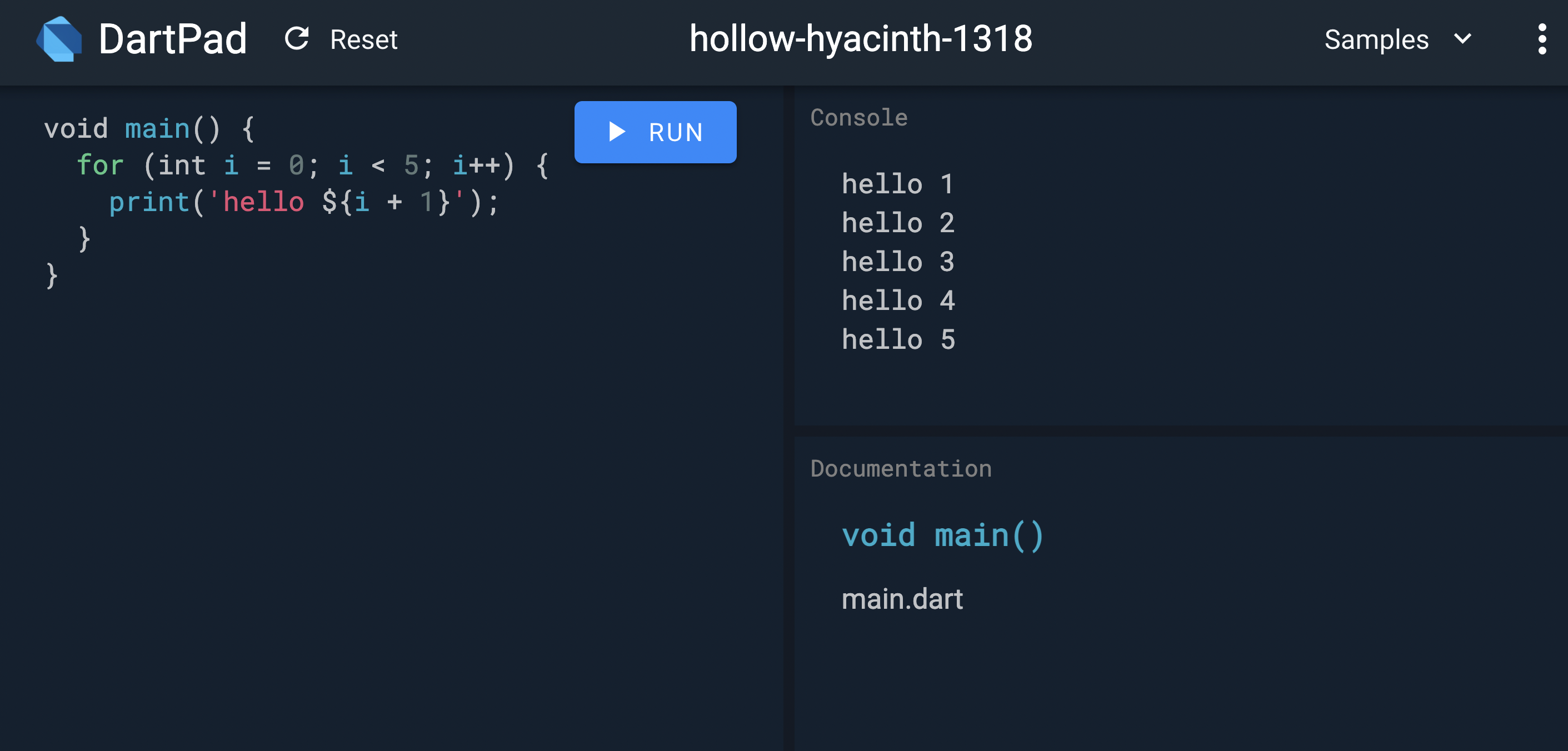 Dartpad는 Dart 프로그래밍 언어로 놀면서 공부할 수 있는 Playground입니다.