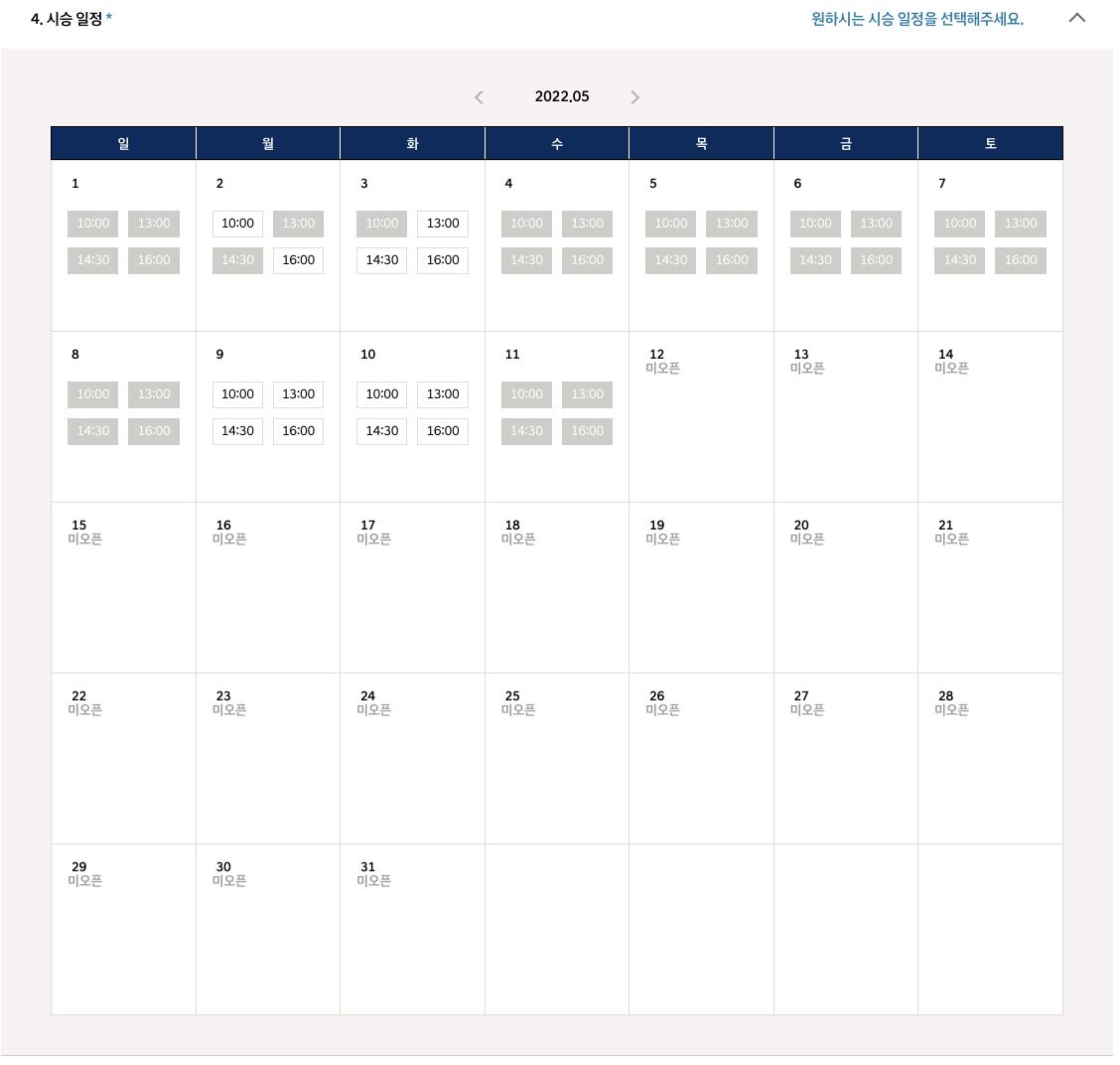 4월 일정은 모두 꽉찼고 5월로 넘어가 보니 아직 예약이 안 된 시간이 있어서 진행할 수 있었습니다.